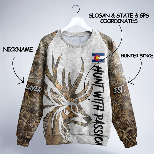 State Pride Buck Hunter Personalized Unisex Sweatshirt