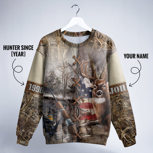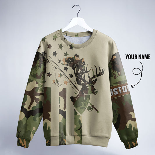 Camo Hunting & Fishing Sweatshirt – Customizable Deer & Bass Design
