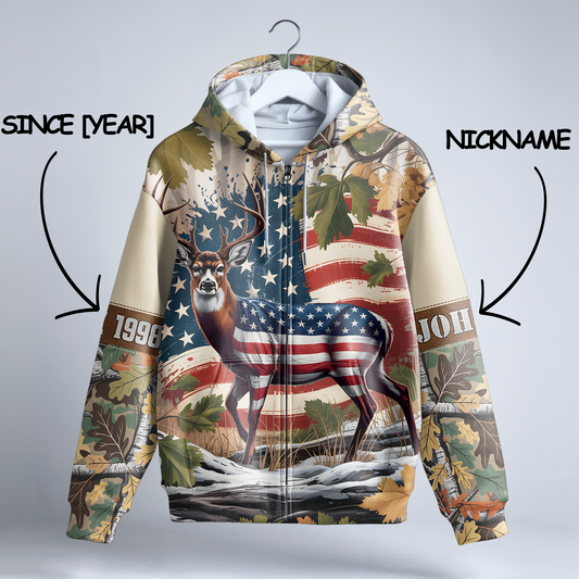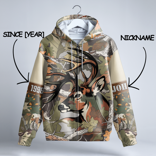 Deer & Bass Custom Camo Zip Hoodie – Built for the Outdoors