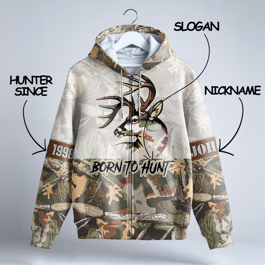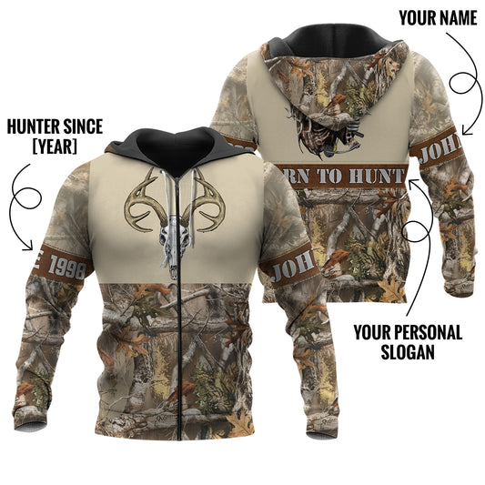 Born to Hunt Personalized Zip Hoodie | Skull Deer & Grim Reaper for Bow Hunters