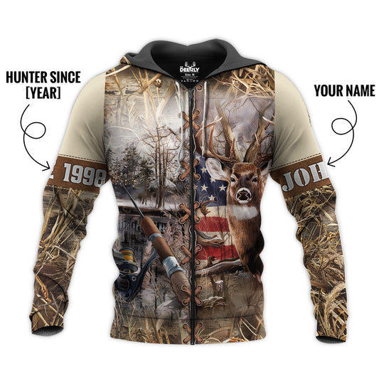 Deer & Bass Hunting Hoodie - Personalized Camo Design