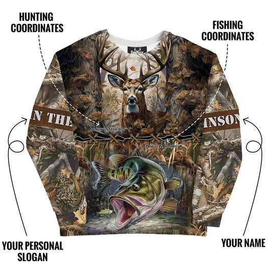 Dual Passion: Deer Hunting and Fishing Sweatshirt Personalized