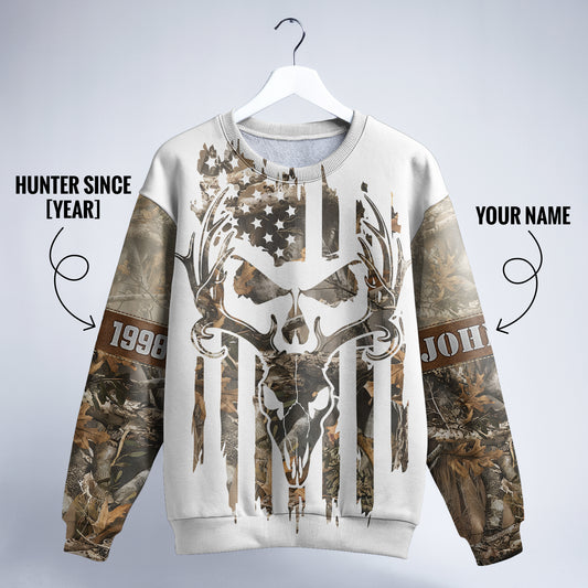 Deer Skull Camo Sweater - Personalized Born to Hunt US Flag Gear