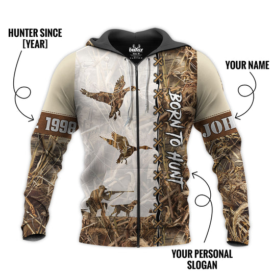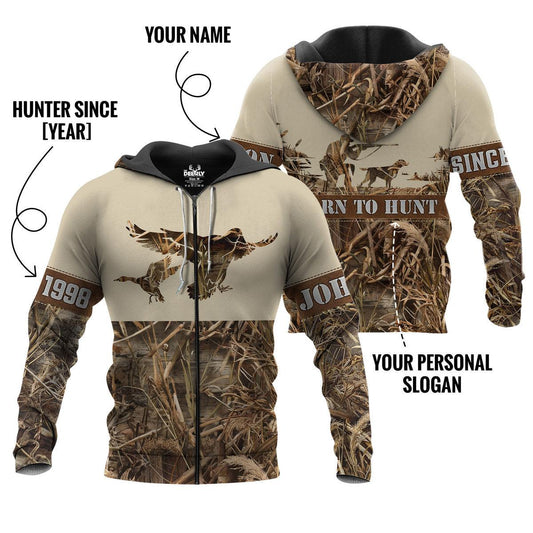 Personalized Waterfowl Hunting Camo Zip Hoodie - Born to Hunt
