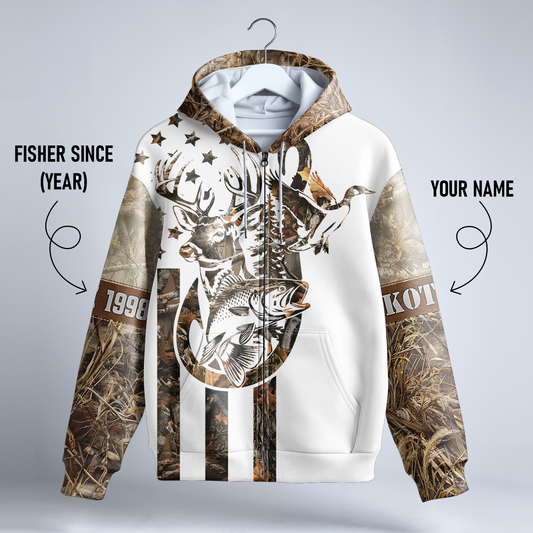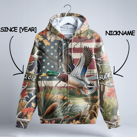 Duck Hunting Zip Hoodie - Warm 3D Camo & Personalized Design