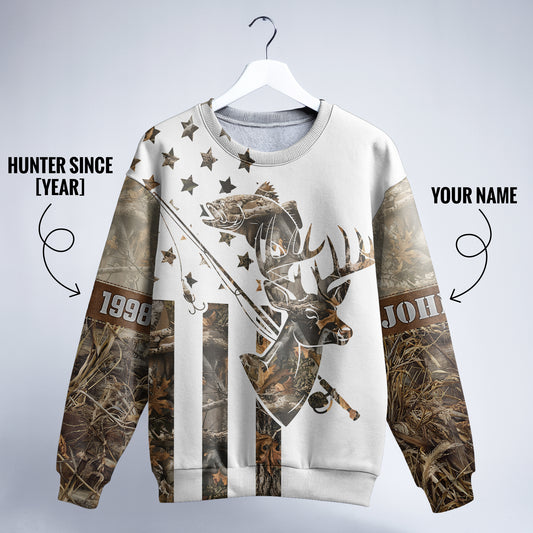 Deer Hunting & Bass Fishing Hoodie - Personalized Camo Design