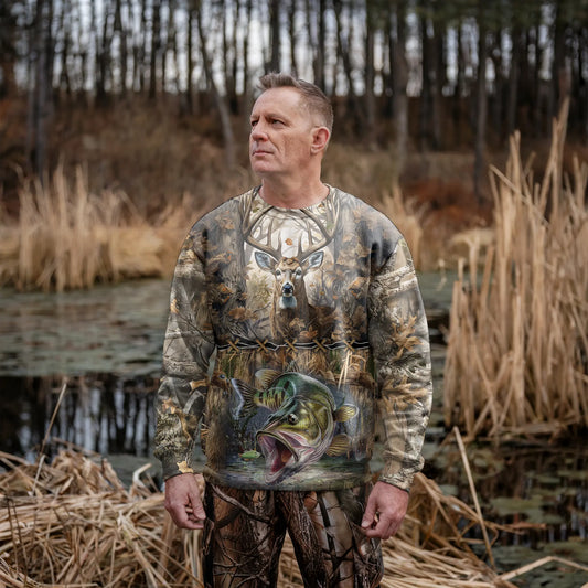 Wilderness Majesty: Deer & Bass Hunting Sweatshirt