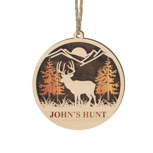 Personalized Deer Hunt 2-Layered Wooden Ornament
