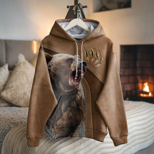 Wild Grizzly Bear Hoodie - Roar of the Wilderness