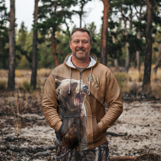 Wild Grizzly Bear Zip Hoodie - Roar of the Wilderness