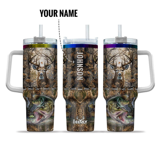 Deer & Bass Hunting 40oz Personalized Tumbler