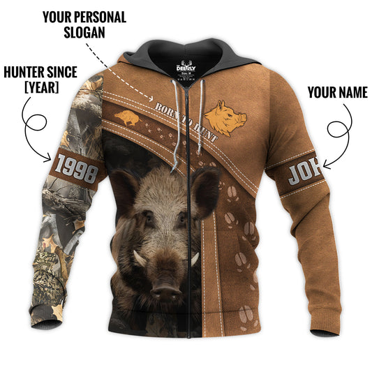 Custom Wild Boar Hunting Zip Hoodie – Personalized for Hunters