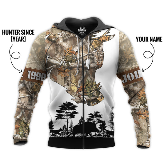 Custom Boar Hunting Zip Hoodie | Wild Hog & Camo Deer Design
