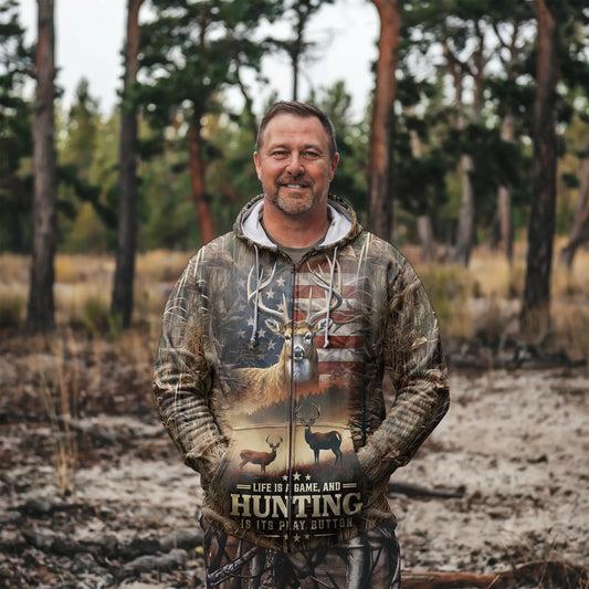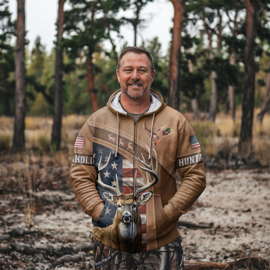 Patriotic Buck Hunter Zip Hoodie - American Heritage
