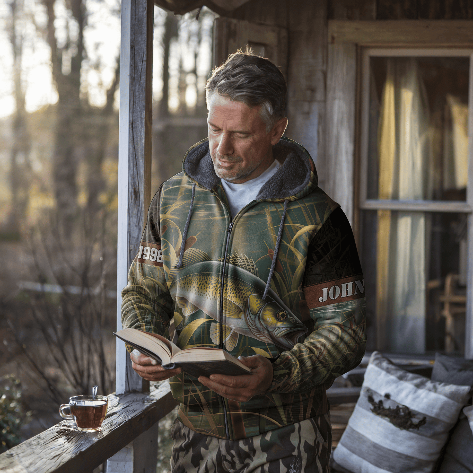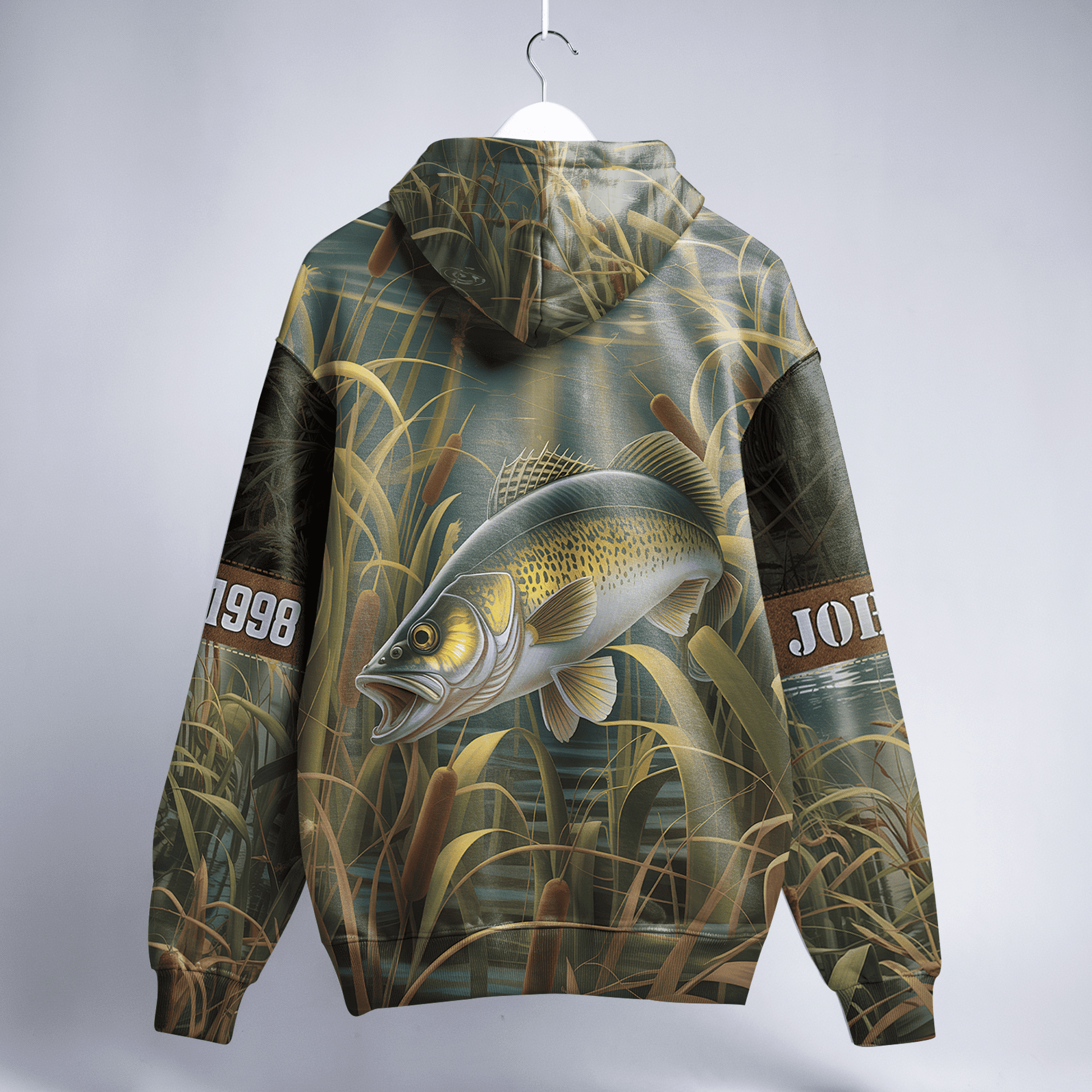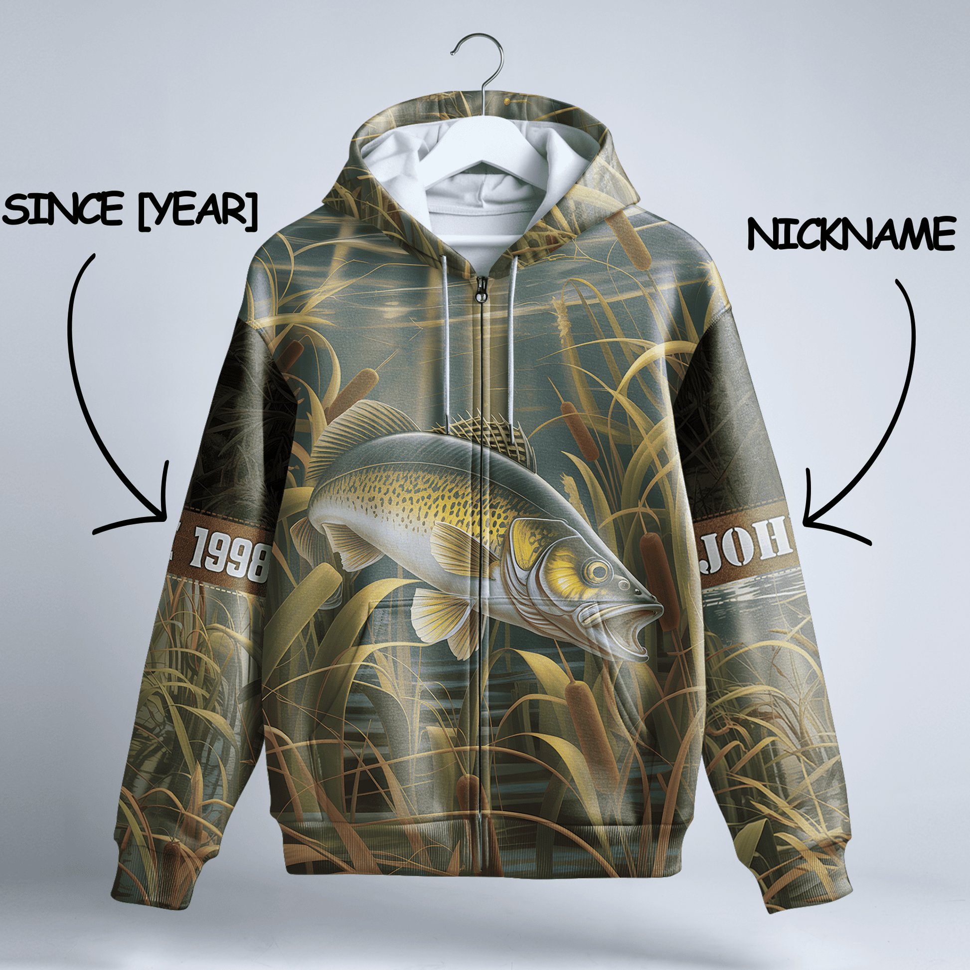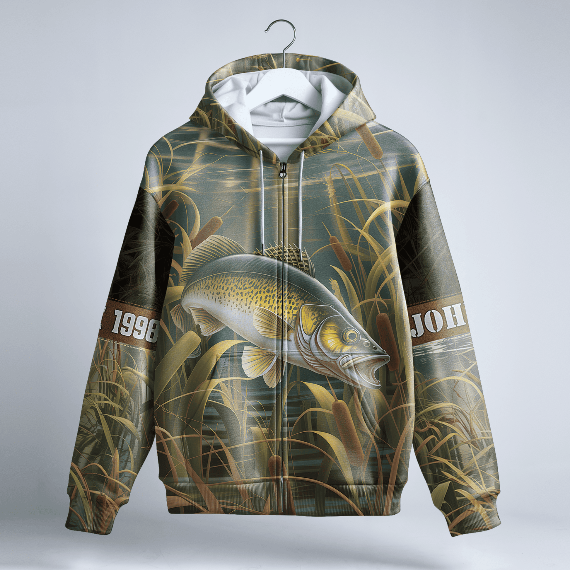 Walleye Marsh Hunter Personalized Zip Hoodie